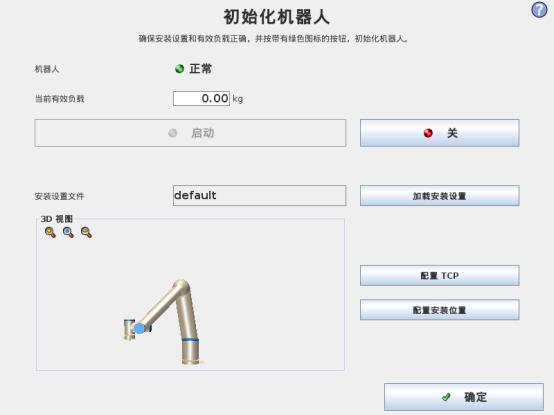 帶綠色圖標的大按鈕是用于對機器人手臂進行實際初始化的。上面的文字,以及其進行的操作,都會根據(jù)機器人手臂的當前狀態(tài)變化。